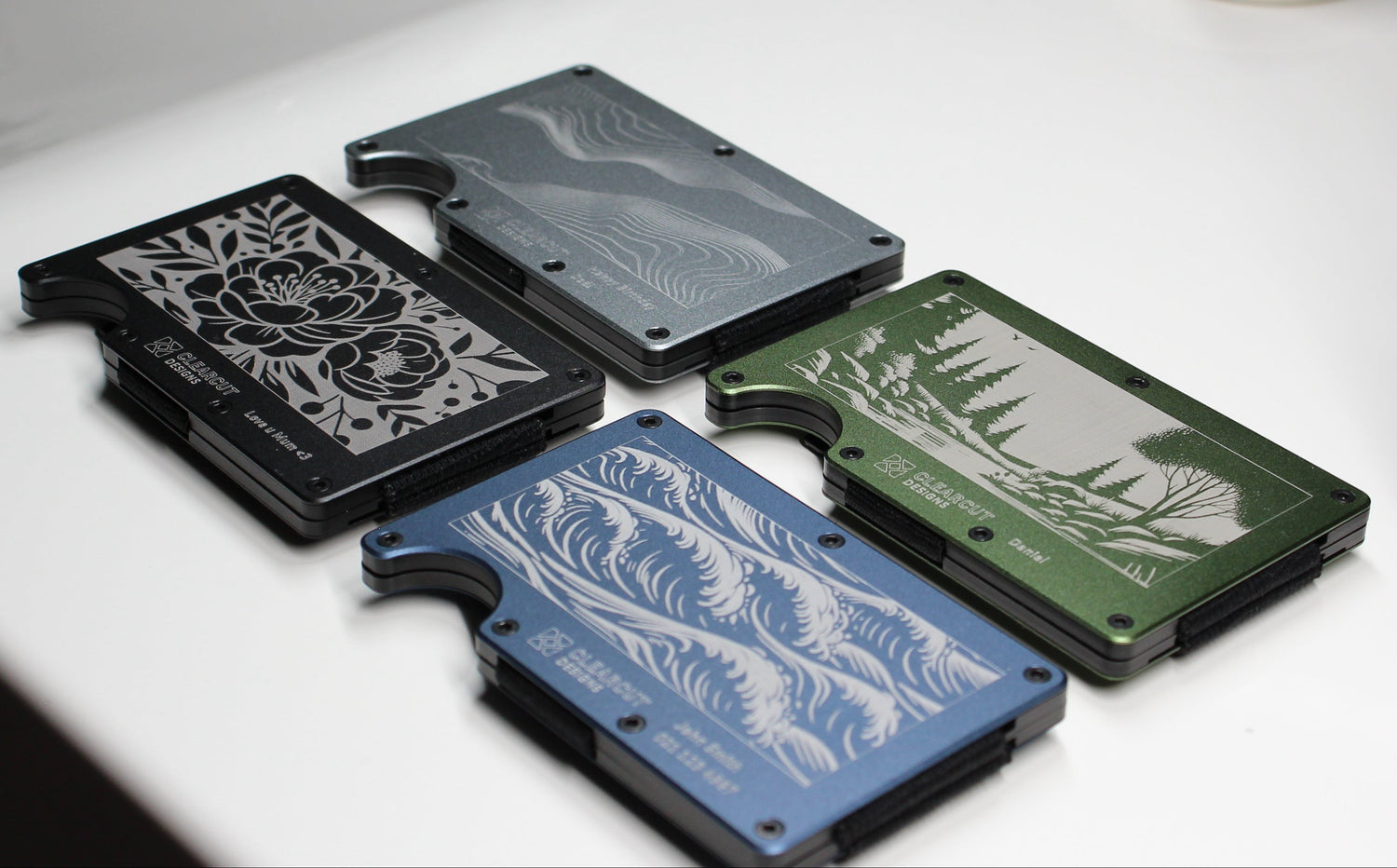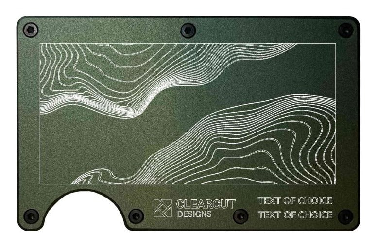 Build the Clearcut Wallet how You want it with own Engraved Text and Style.